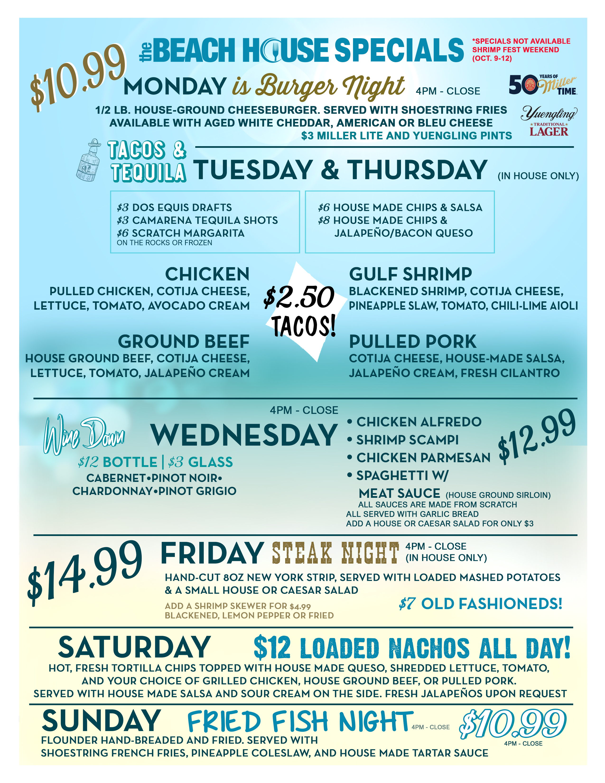 Regular menu only, no specials, during Shrimp Fest weekend October 9th-12th.